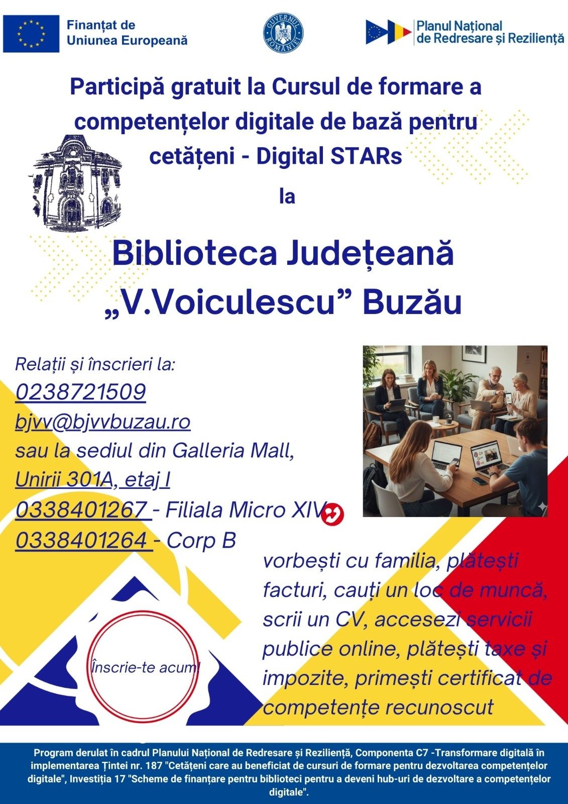 Digital STARs, Gratuit, la Biblioteca „V. Voiculescu” Buzău! Vrei să te descurci mai bine pe internet, în relația cu instituțiile sau la job? Te invităm la Cursurile de Competențe Digitale, special create pentru viața de zi cu zi! De ce să te înscrii? • Gratuitate totală pentru oricine are peste 16 ani. • Certificat Recunoscut […]