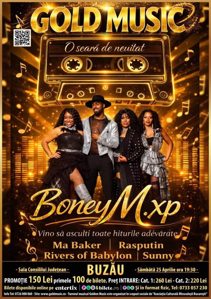 Pe 25 aprilie, la Buzău, te așteaptă Boney M. Xperience – trupa care readuce pe scenă energia, ritmul și nostalgia hiturilor legendare ce au cucerit generații întregi.