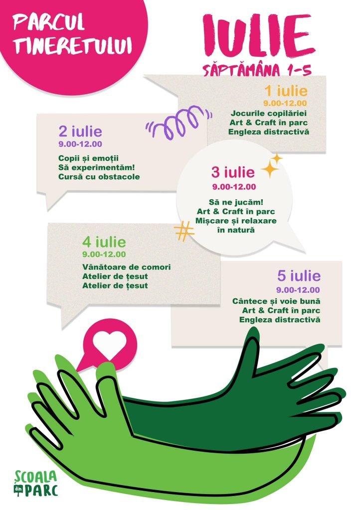 Începând cu 1 iulie, copiii sunt așteptați de luni până vineri, în parcul Crâng și în parcul Tineretului, pentru a învăța, a se distra și a descoperi lucruri noi într-un cadru natural și prietenos.