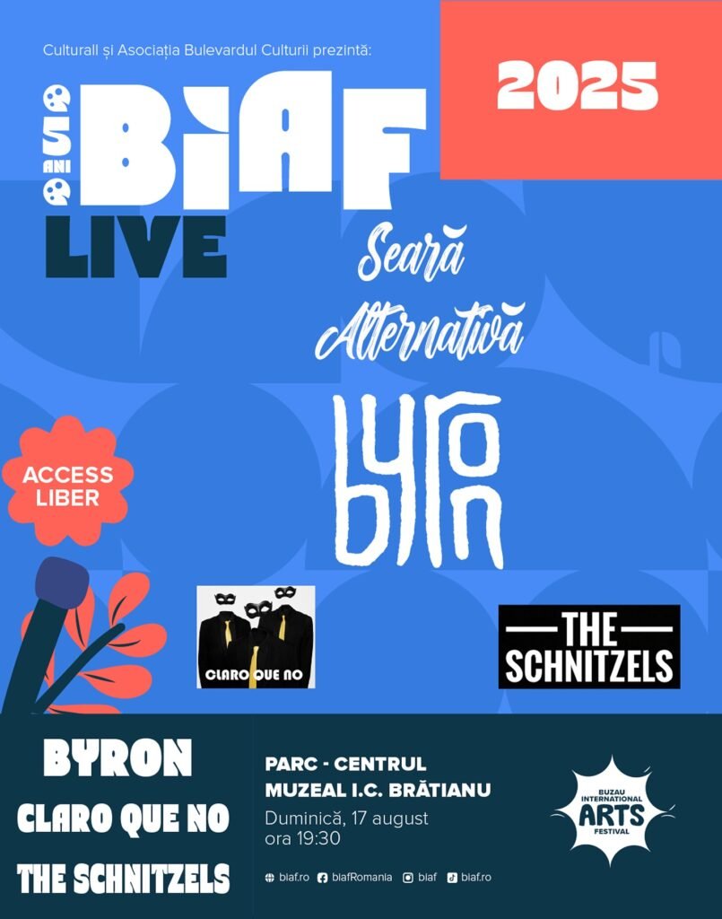 𝐒𝐞𝐚𝐫𝐚 𝐀𝐥𝐭𝐞𝐫𝐧𝐚𝐭𝐢𝐯𝐚̆ @ #𝐁𝐈𝐀𝐅 𝟐𝟎𝟐𝟓 Un concert. Trei trupe. O singură atmosferă pe care n-o uiți. 𝒃𝒚𝒓𝒐𝒏 • 𝑪𝑳𝑨𝑹𝑶 𝑸𝑼𝑬 𝑵𝑶 • 𝑻𝑯𝑬 𝑺𝑪𝑯𝑵𝑰𝑻𝒁𝑬𝑳𝑺