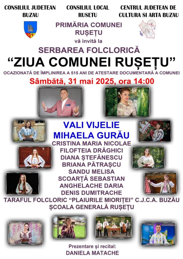 Cu aceasta ocazie se va sarbatori 515 de ani de la prima atestare documentara a Comunei Rusetu.